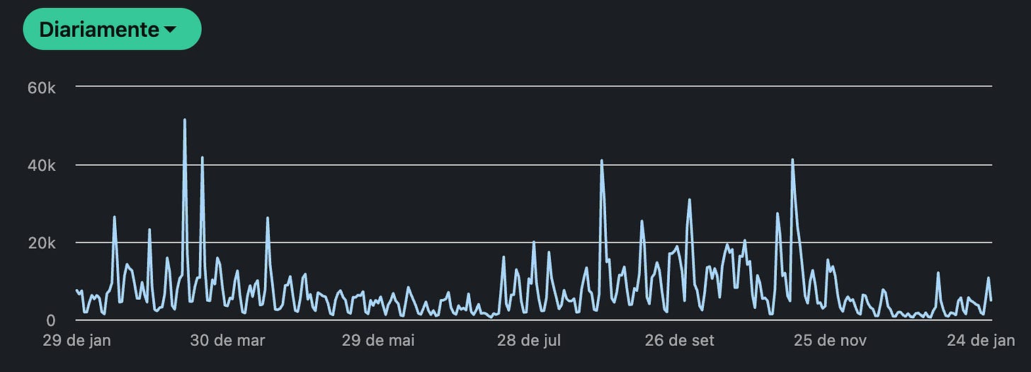 Percebo que o LinkedIn segue a agenda corporativa. Todo ano acontece algo parecido: em dezembro o engajamento começa a cair, em janeiro há uma retomada parcial e só depois do carnaval a coisa tende a normalizar de fato.