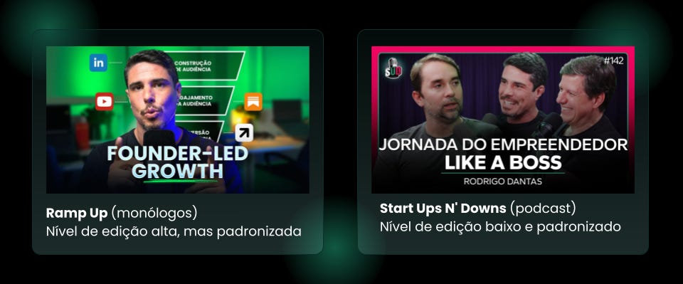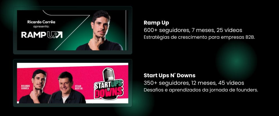 Estou atuando com dois canais, sendo um de vídeos e outro de podcast, ambos focados nos meus ICPs (empreendedores B2B / founders de startups).