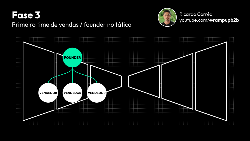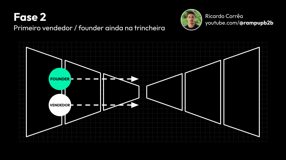 Permaneci vendendo, afinal, eu não sabia se o novo vendedor performaria, tampouco se ele ficaria no time. Uma vez validadas essas hipóteses, e com o primeiro vendedor rampado, parti para a próxima fase.