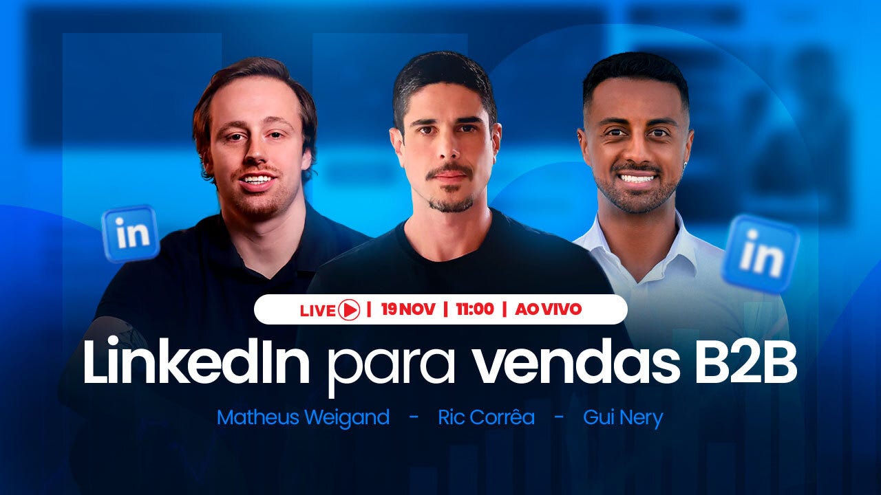 Vamos fazer uma live para falar sobre Como gerar negócios B2B no LinkedIn e, pra isso, convidamos - além de mim - o Gui Nery da Linkupers e o Matheus Weigand da Getdemo.