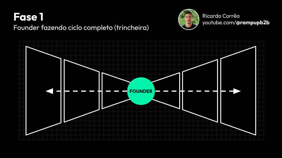 No início do negócio os founders colocam energia total em prospecção e vendas, afinal, a empresa precisa construir base de clientes e faturamento. A primeira pernada do negócio costuma ir bem, afinal, founders são profundos conhecedores do que vendem, da indústria etc, e normalmente começam vendendo dentro de suas redes de relacionamento.