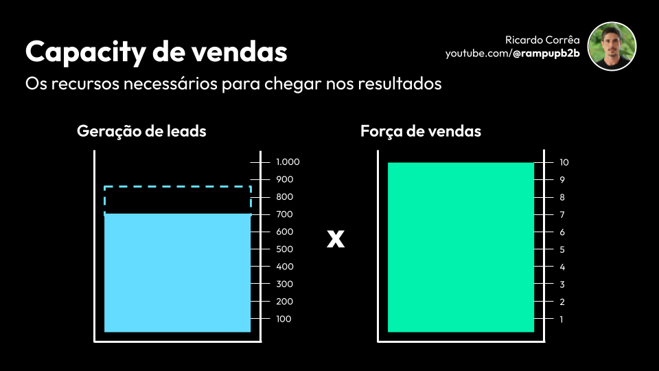 Digamos que a operação tem 2 vendedores que recebem 50 leads / mês e batem meta;