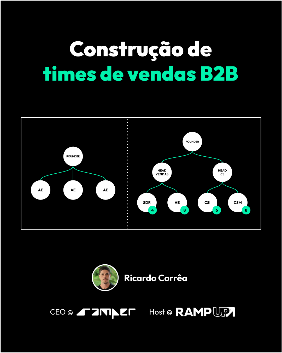 Fiz uma publicação que é, na minha opinião, um manual simples e práticos para orientarem founders B2B a construirem seus times de vendas ao longo dos 4 estágios iniciais da empresa, saindo do zero até mais de R$10 milhões de faturamento.