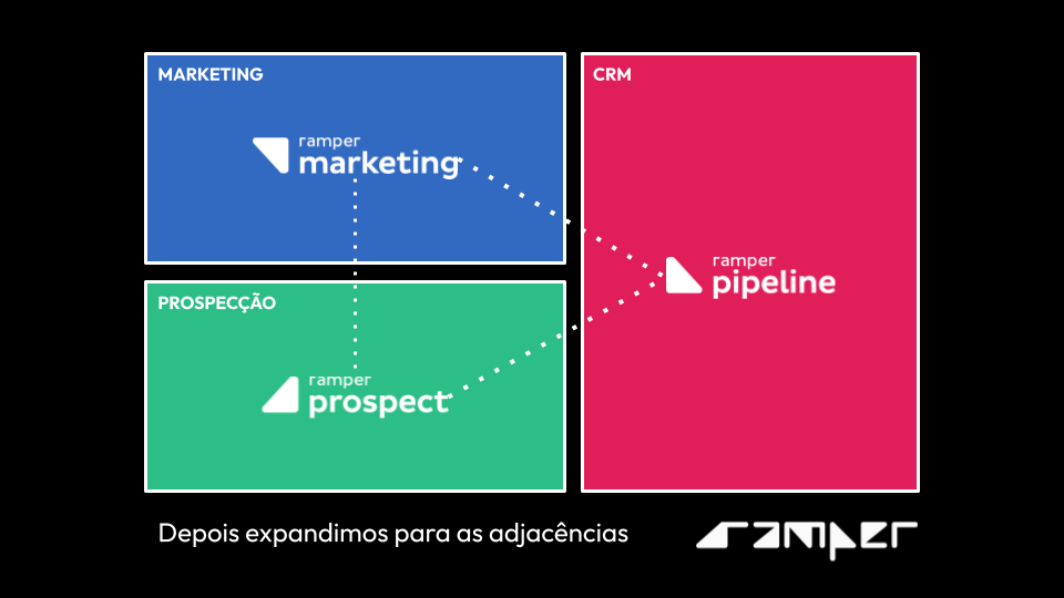 No caso da Ramper, por exemplo, quando nós já tínhamos uma marca conhecida no nosso segmento e um canal de distribuição forte - centenas de leads passando no comercial e milhares de clientes ativos - decidimos agregar outras duas ofertas no nosso portifólio.