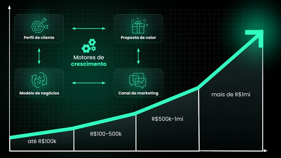Trilhas de conhecimento: como ir do mil ao milhão/mês; motores de crescimento etc