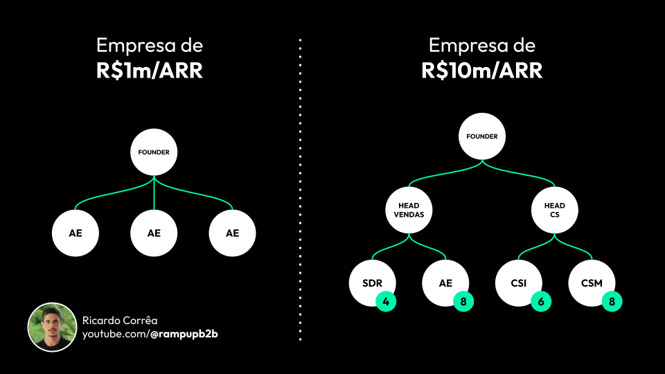 Diferença de estrutura de uma empresa de R$1m/ano vs R$10m/ano